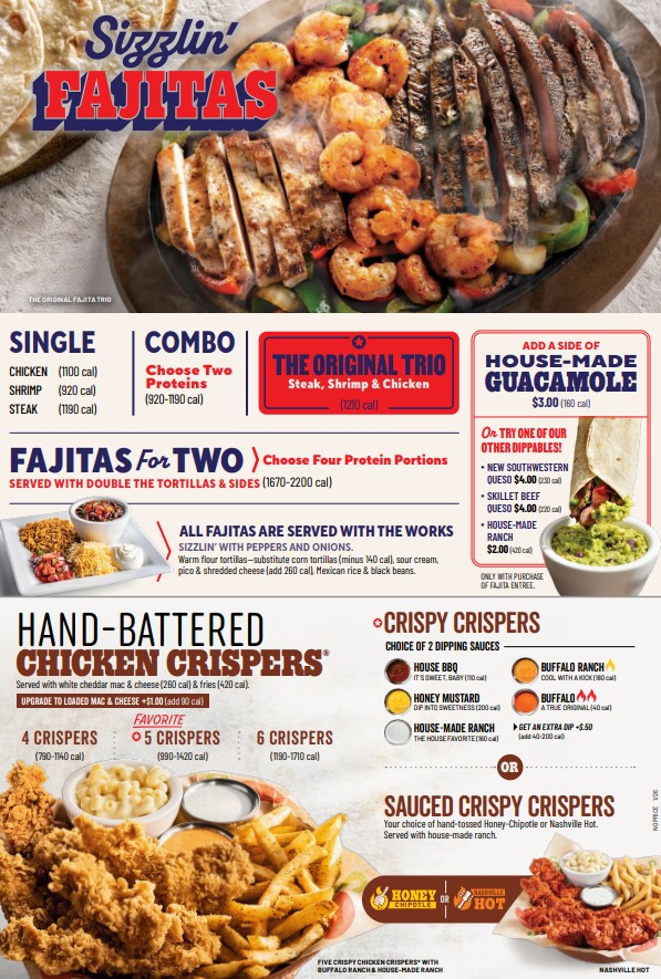 Chili’s Grill & Bar invites you to indulge in a vibrant menu that perfectly balances classic American favorites with bold Tex-Mex flavors. Their Big Mouth Burgers® stand out, especially the Alex's Santa Fe Burger, which layers guacamole, pepper jack cheese, and zesty Santa Fe sauce for a flavorful kick. For comfort food lovers, the Chicken Crispers® Combos are a must-try—crispy, tender pieces served with creamy white cheddar mac & cheese, fries, and a variety of dipping sauces, including the tantalizing Nashville Hot and Honey Chipotle versions. The bar menu shines with its rotating Margarita of the Month specials and signature drinks like the Patrón® Marg and Presidente Margarita®, crafted with top-shelf tequilas and fresh ingredients. Customers consistently praise both the food’s satisfying portion sizes and the attentive, friendly service that elevates the entire dining experience. Whether you’re craving a hearty burger or a refreshing cocktail, Chili’s delivers with bold flavors and warm hospitality.